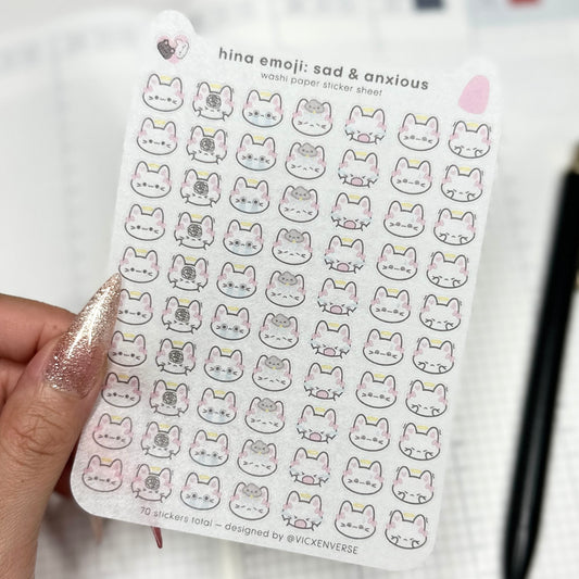 WASHI STICKER SHEET ✦ HINA EMOJI: SAD & ANXIOUS